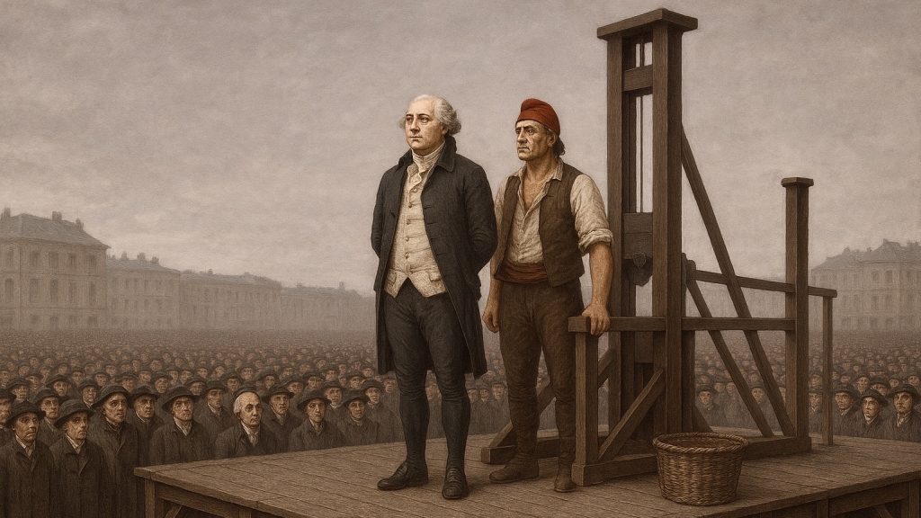 Le 21 janvier 1793, sur la place de la Révolution à Paris (aujourd’hui place de la Concorde), Louis XVI, roi déchu des Français, est guillotiné. À 10 h 22, la lame tombe sous les yeux d’une foule immense. Le bourreau Charles-Henri Sanson brandit la tête du roi en criant : « Vive la Nation ! », tandis qu’une partie de la foule acclame et d’autres restent saisies de stupeur.